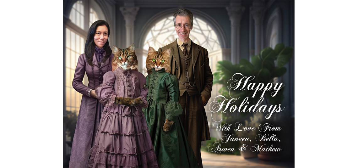 My husband and I LOVE our cats. They are our children. :) When I design our holiday card every year, Arwen and Bella are a big part of it. This design was a concept I'd wanted to try for a long time but I worried that people would think I was nuts. I guess in 2023 I stopped worrying what people would think. They either loved this card or they thought it was creepy, but it got some huge reactions and I guess the people who loved it understand my sense of humor.